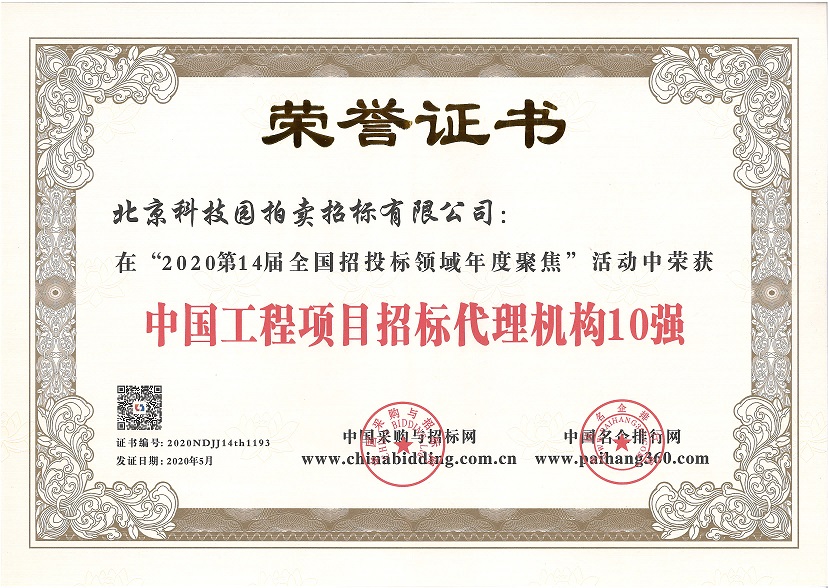 2020第14屆全國招投標(biāo)領(lǐng)域年度聚焦“中國工程項(xiàng)目招標(biāo)代理機(jī)構(gòu)10強(qiáng)”
