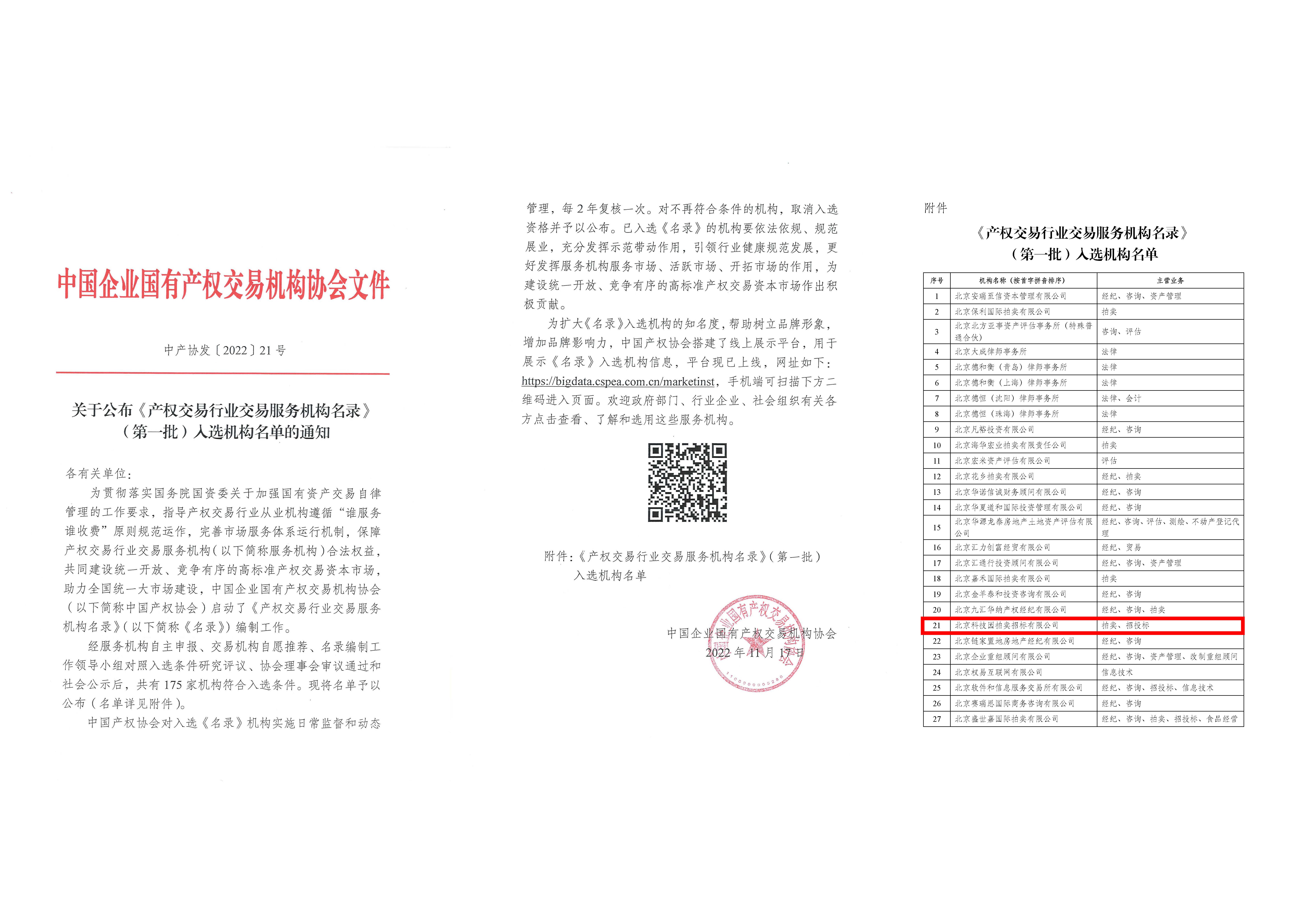 產權交易行業交易服務機構名錄》(第一批)入選機構