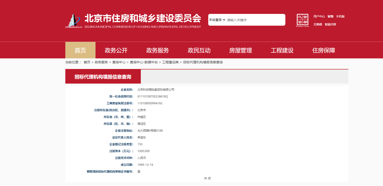 北京市住房和城鄉建設委員會招標代理機構填報信息