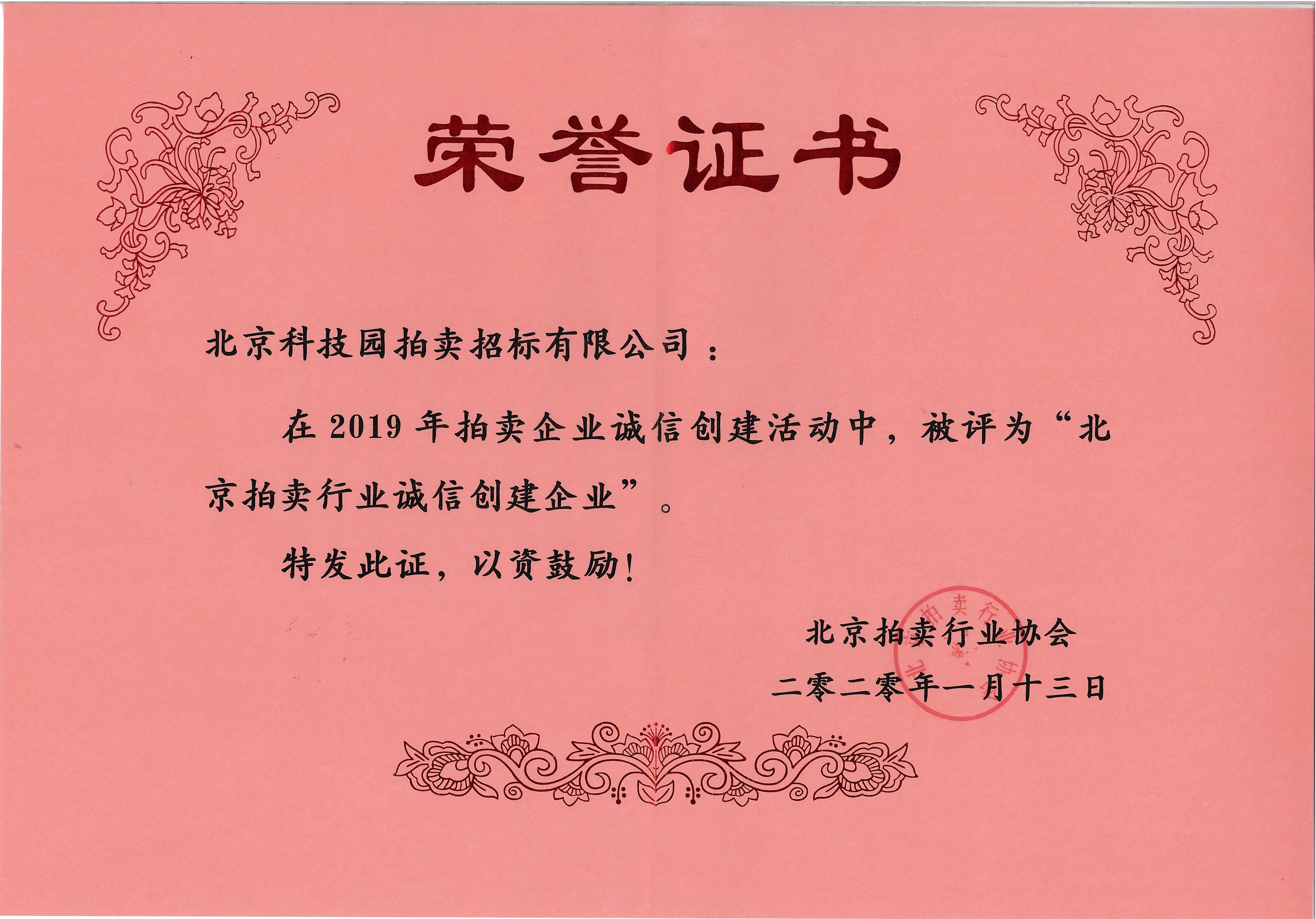 2019北京拍賣行業誠信創建企業