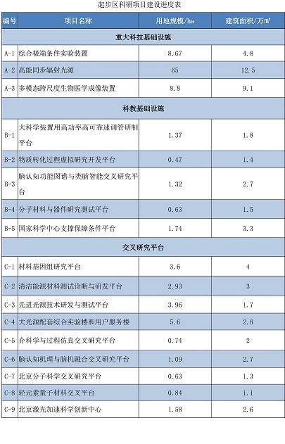 懷柔科學城起步區布局建設高能同步輻射光源、綜合極端條件實驗室、多模態跨尺度生物醫學成像裝置三項重大科技基礎設施,以及材料基因組研究平臺、清潔能源材料測試診斷與研發平臺、激光加速器創新中心等多個交叉研究平臺和科教基礎設施,是懷柔科學城創新要素聚集度最高的區域。