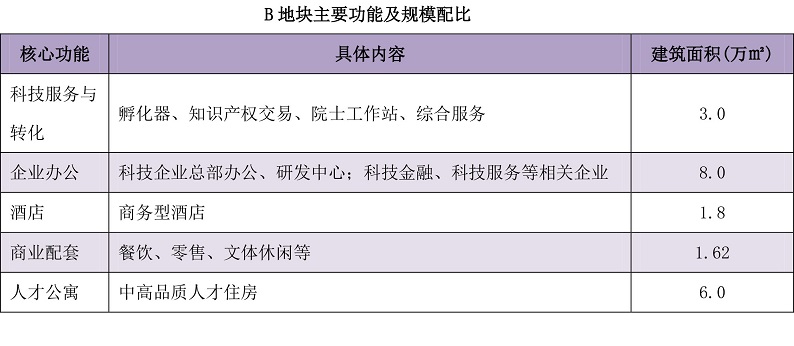 核心功能:科技服務與轉化、企業辦公、酒店、商業配套、人才公寓。