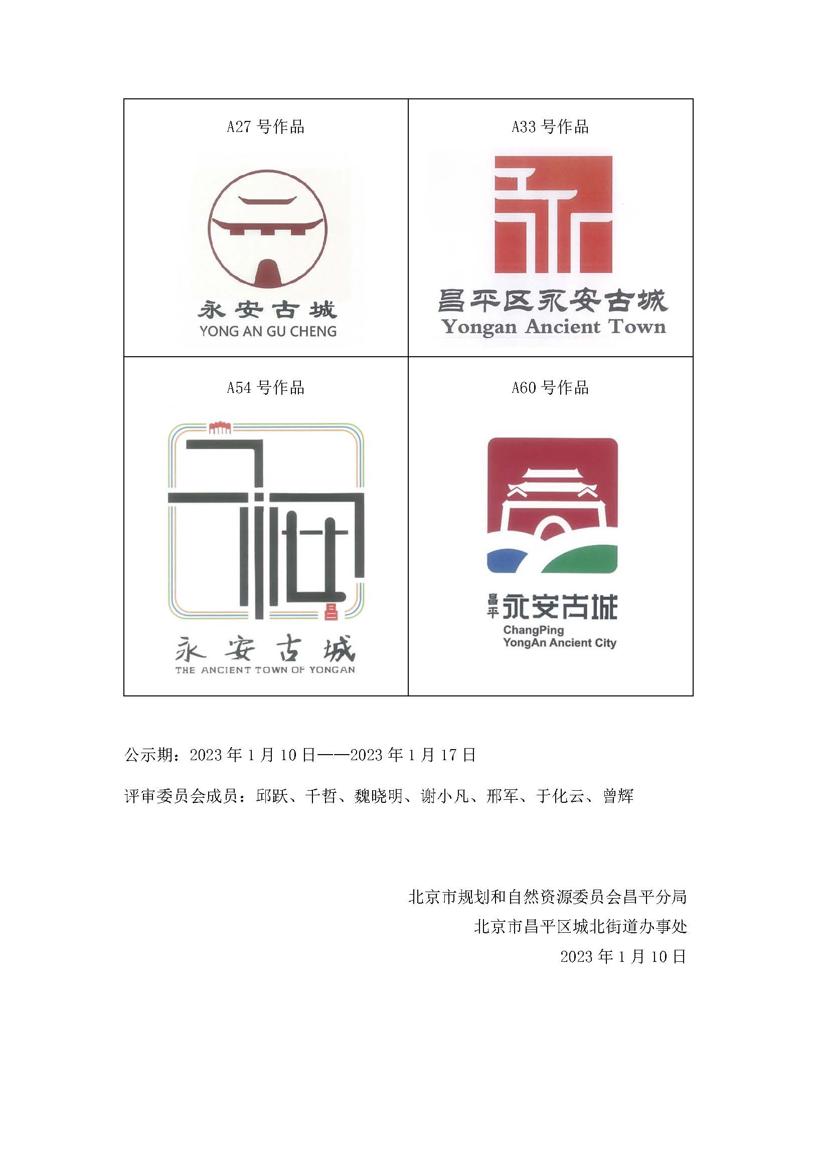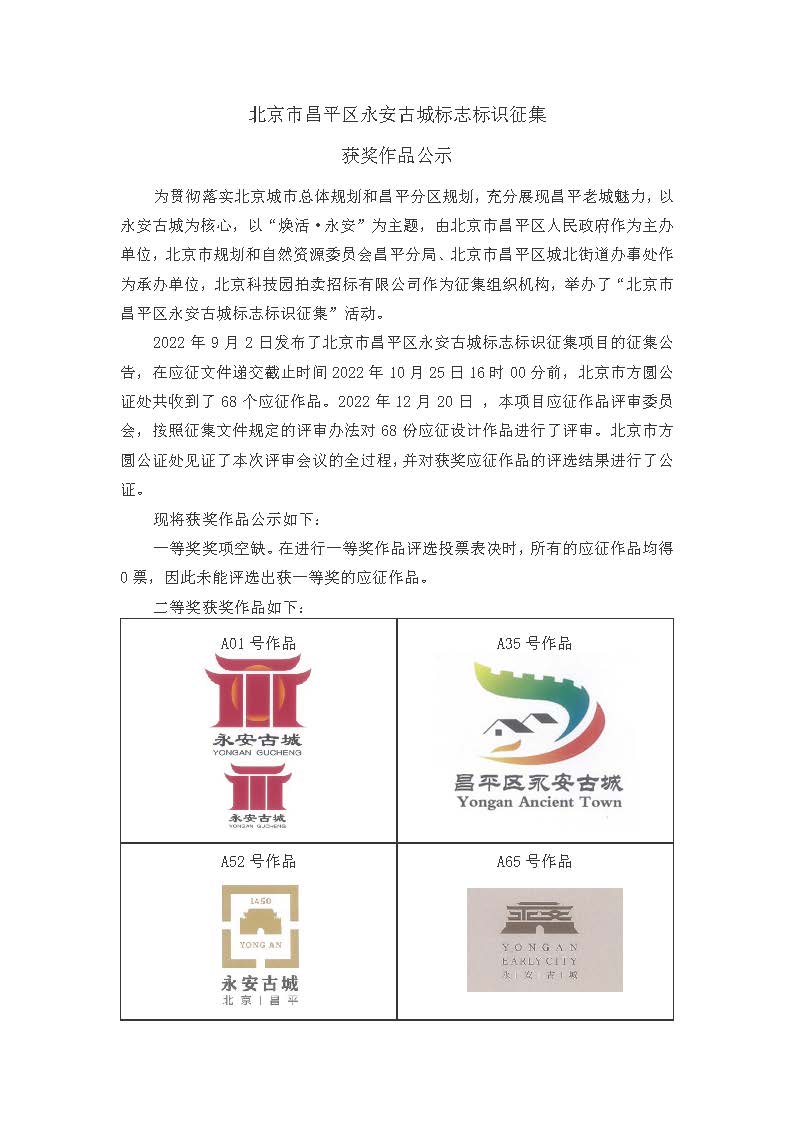 北京市昌平區永安古城標志標識征集 獲獎作品公示